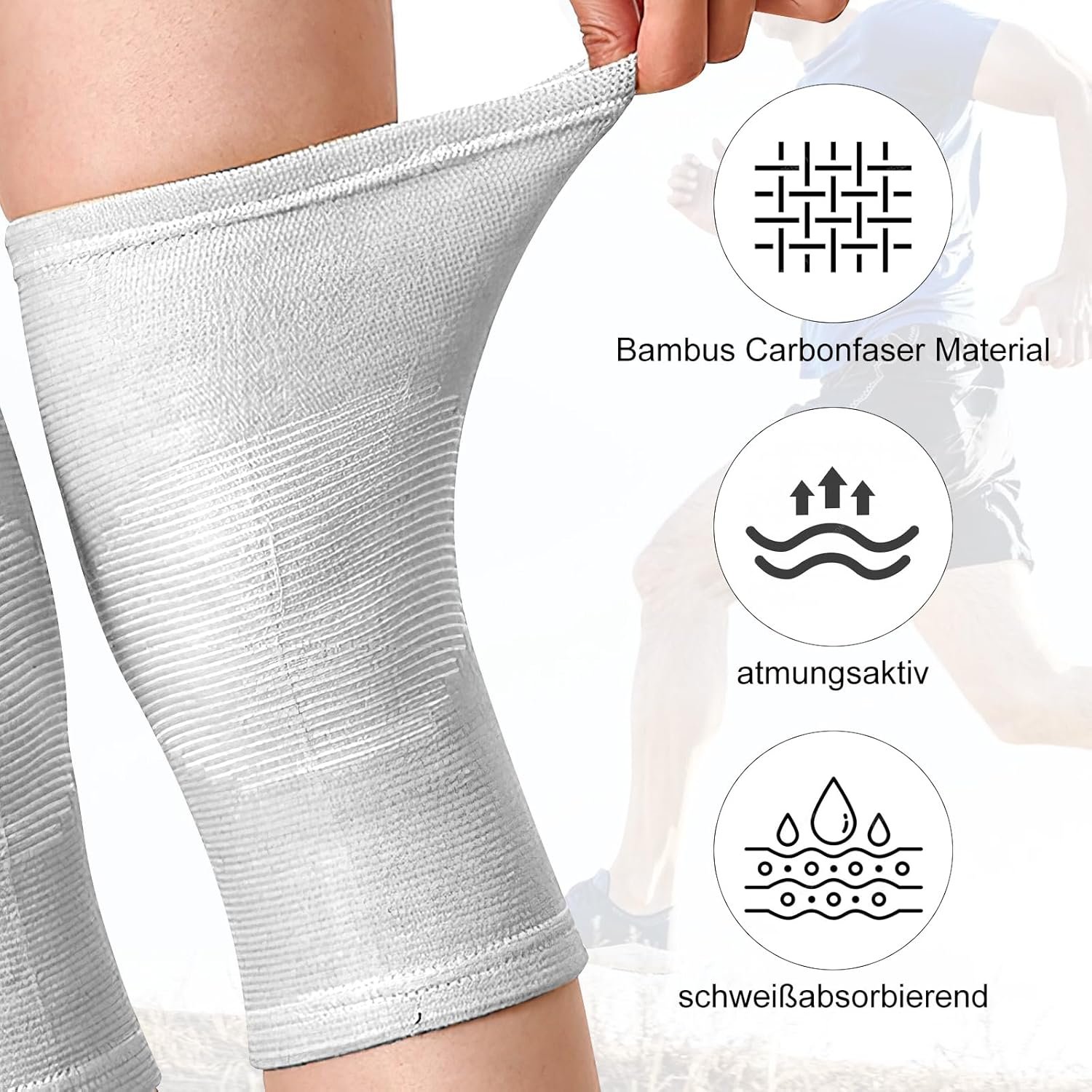 2 Genouillère En Bambou – Bandage De Compression – Sportive – Respirante – Confortable
