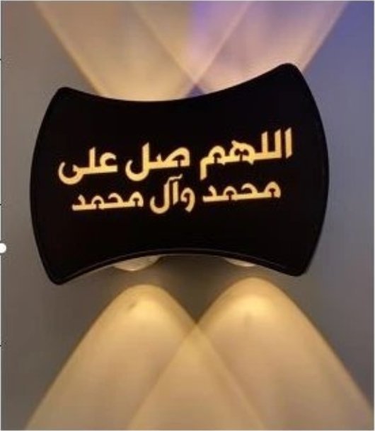grâce à sa phrase arabe illuminée qui signifie : « Ô Allah, envoie tes bénédictions sur Muhammad et sa famille ».
