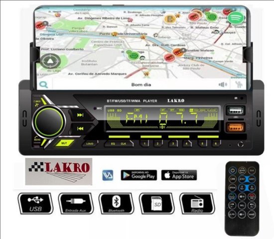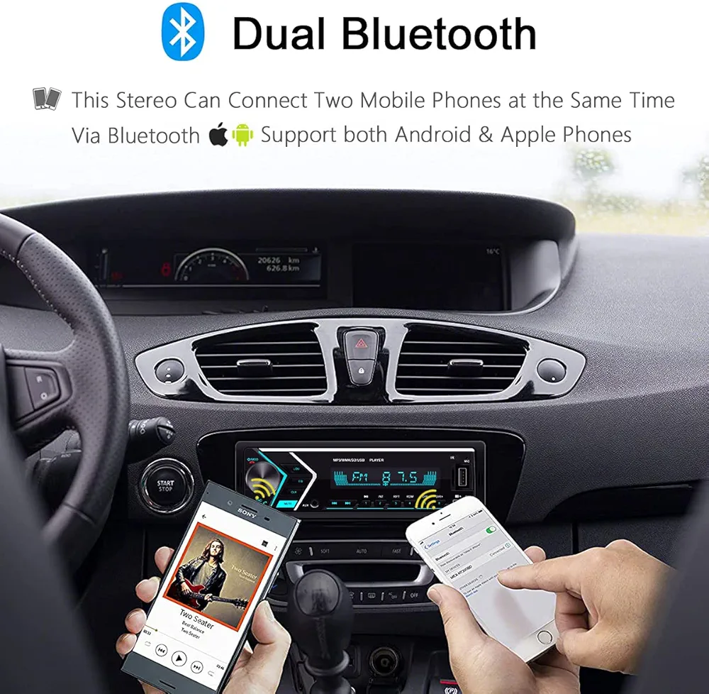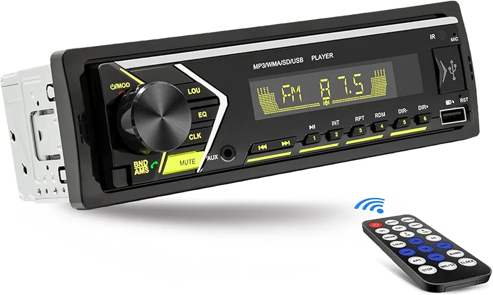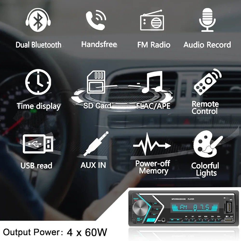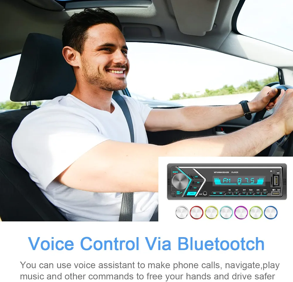 Autoradio Avec Bluetooth – 7 Coloris Disponibles – Lecteur MP3 Et Port USB – Récepteur Audio FM/WMA/TF/AUX – Appels Mains Libres – Télécommande Sans Fil