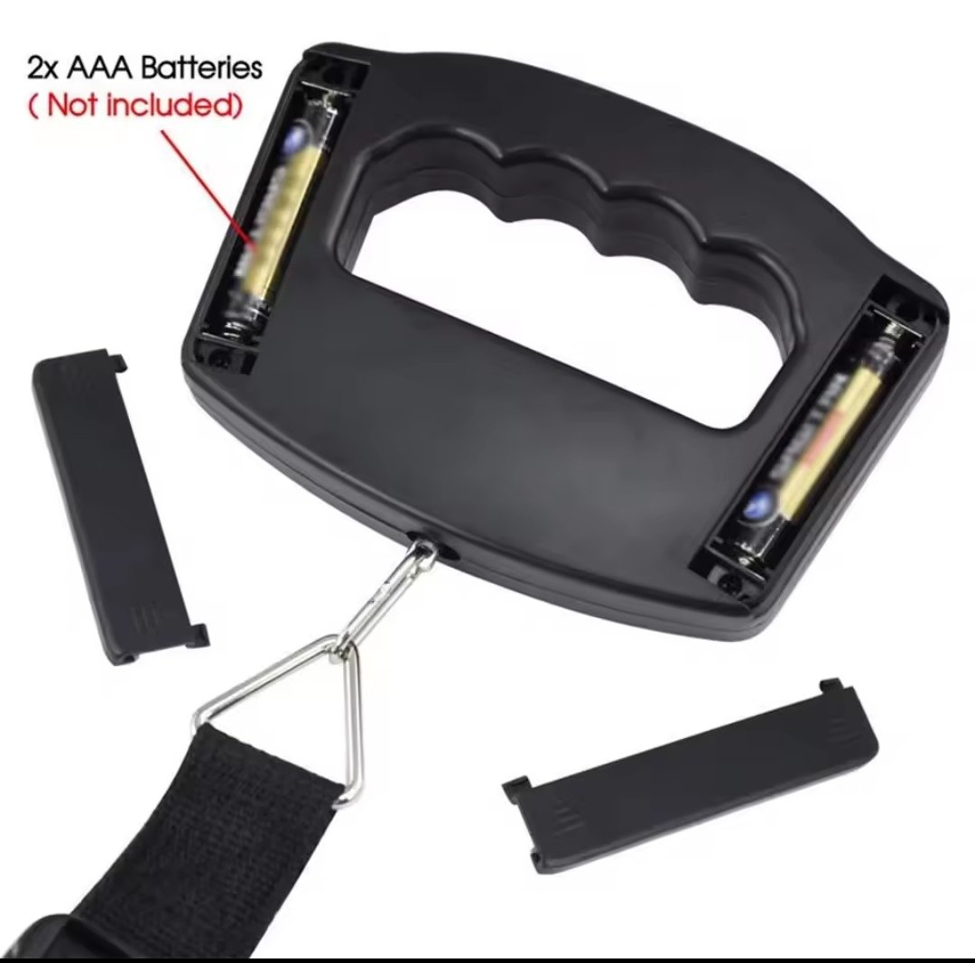 Ce pèse-bagages numérique fonctionne avec deux piles AAA (non fournies).