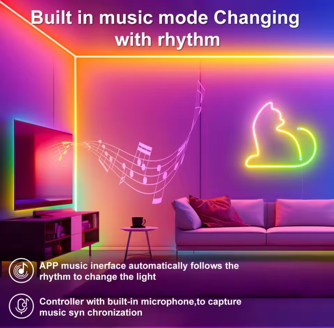 Bande LED Néon 5M – RVB Flexible – Contrôle APP – Télécommande – Suivi de Musique – Étanche