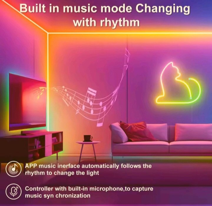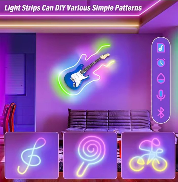 Ruban néon LED RGBIC 5 V, flexible et étanche, pour décoration murale de chambre, avec synchronisation musicale.