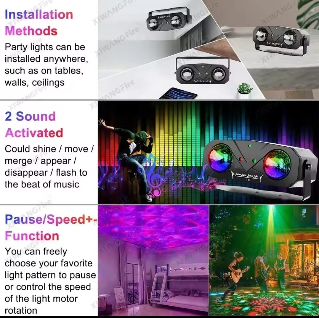 Les lumières disco SPOOBOOLA vous plongent dans une ambiance romantique, fantastique et magique, pour des fêtes inoubliables où que vous soyez ! La boule disco laser est idéale pour la décoration intérieure et extérieure : chambres, places publiques, patinoires, anniversaires, réunions de famille, discothèques, bars, banquets, mariages, salles de danse, hôtels, karaokés, concerts et autres lieux de divertissement.