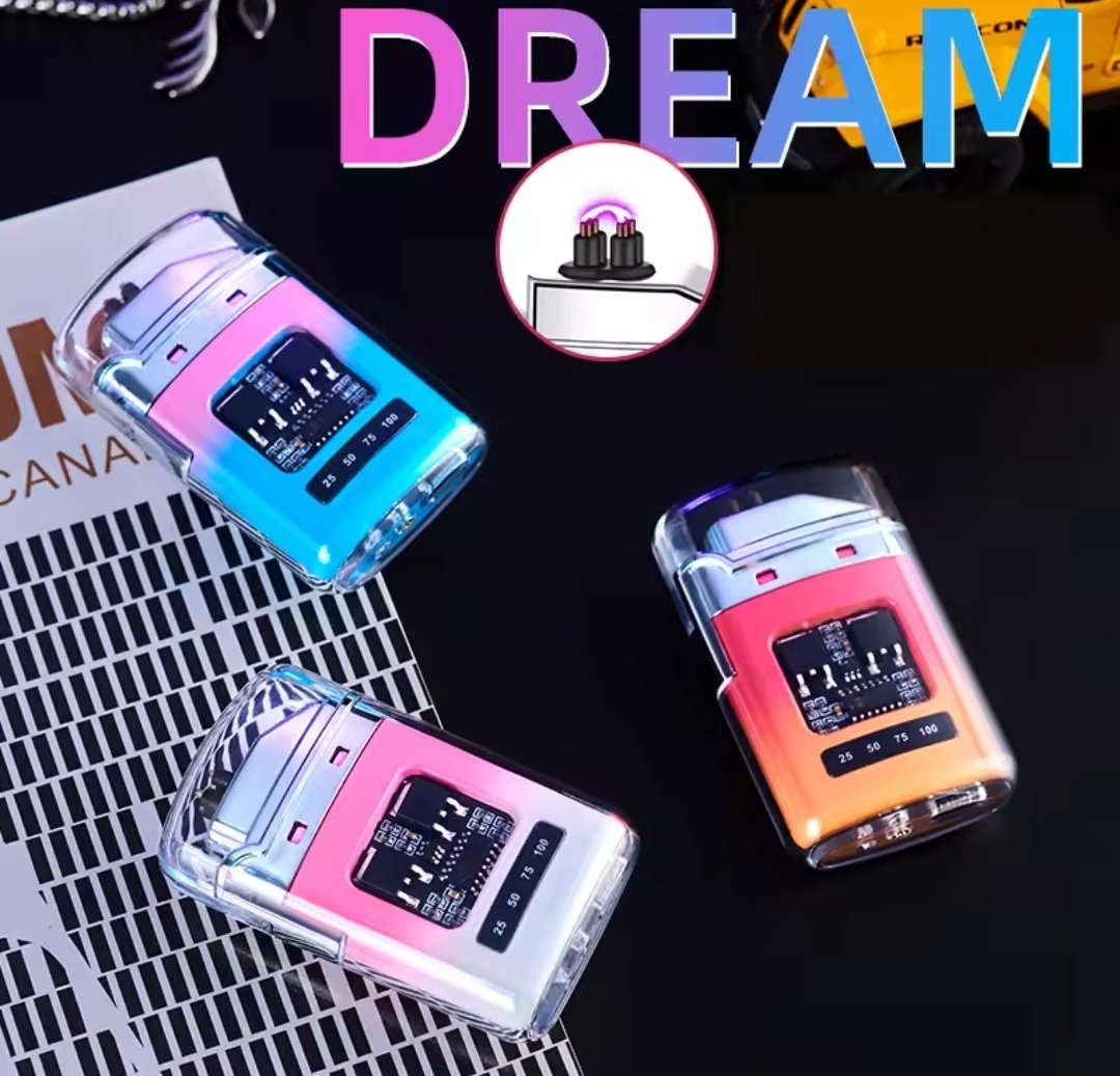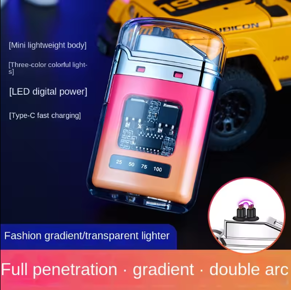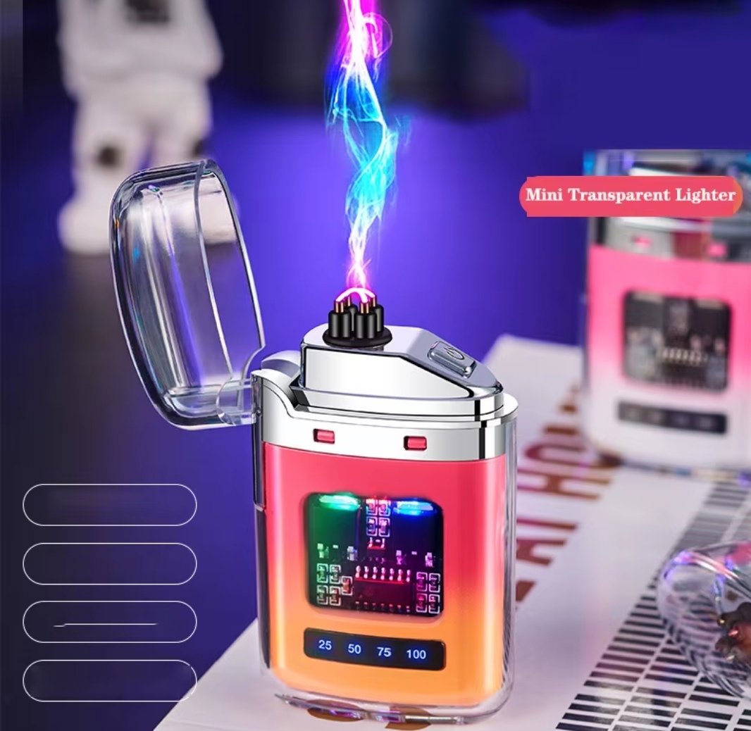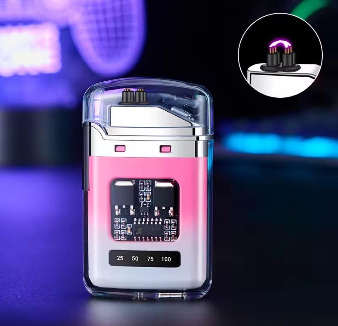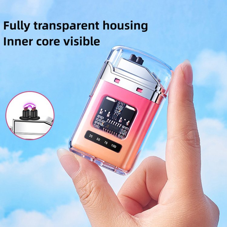 Briquet à Arc Double Rechargeable De Type C – Corps Transparent – Affichage LED de la batterie – Plasma Pulsé – Portable et Coupe-vent
