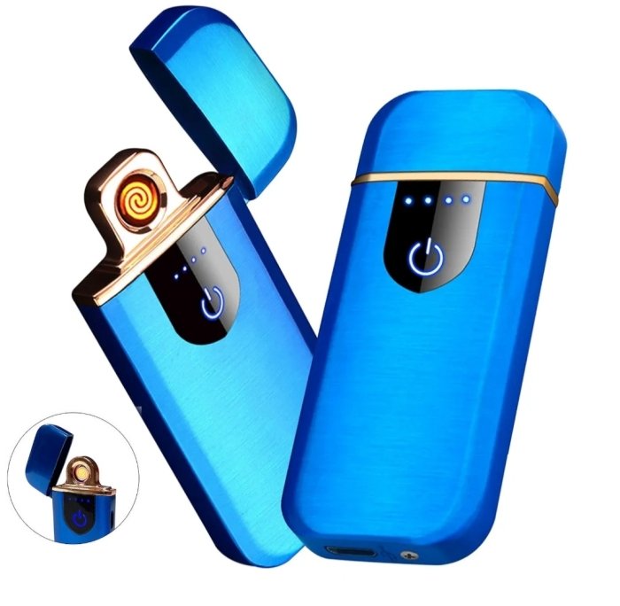 Briquet Électrique De Chargement USB – Métal – Ultra Fine – Écran Tactile – Indicateur LED – GR – Bleu