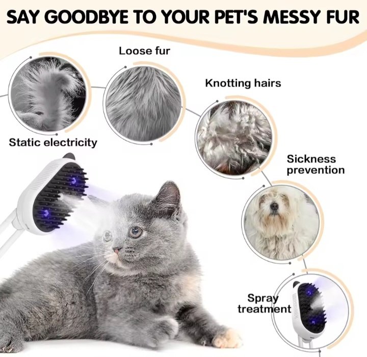 Brosse Vapeur 4 En 1 Pour Animaux – Lumière UV Pour Le Nettoyage Des Poils