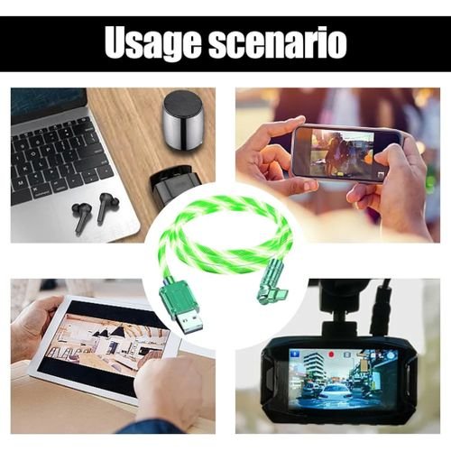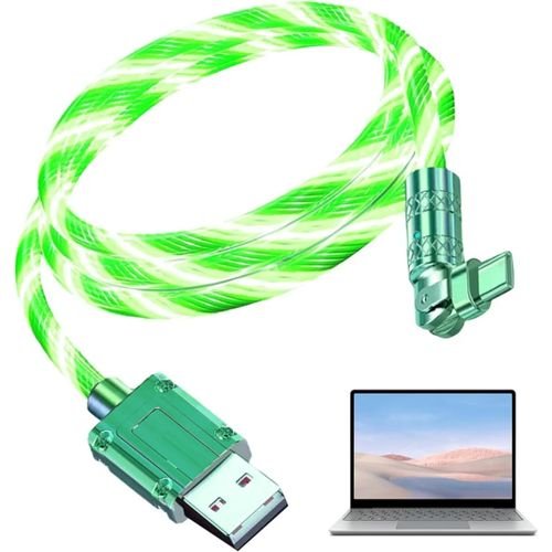 Câble de Charge Rapide RGB Brillant – 120W 6A Max – Type C – Rotation 180° – Vert