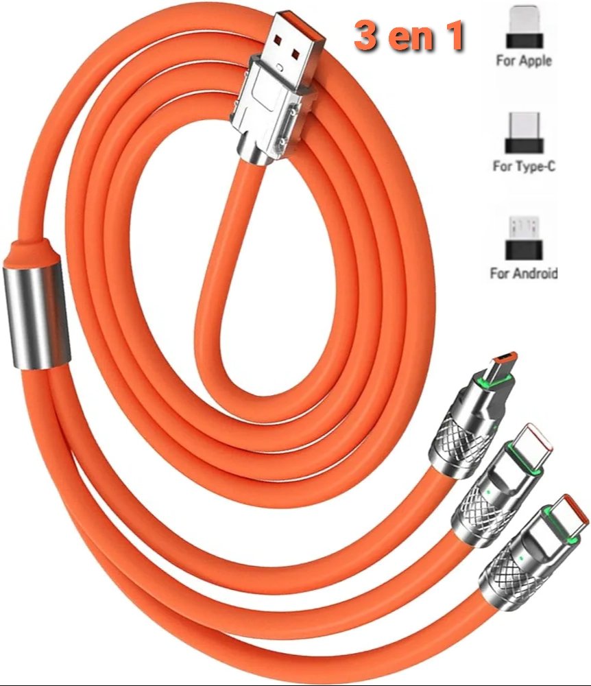 • 3 en 1, 3,8 A, 120 W, charge rapide, Micro USB/Type C/iPhone Android.