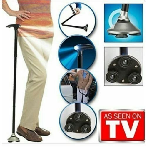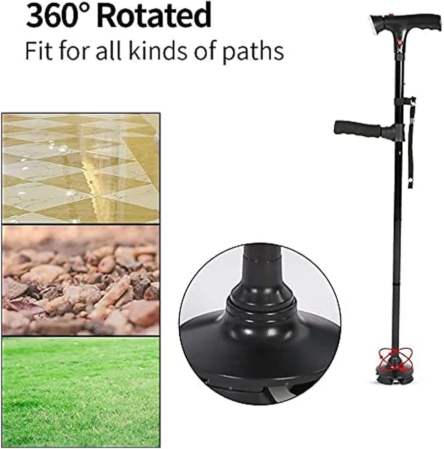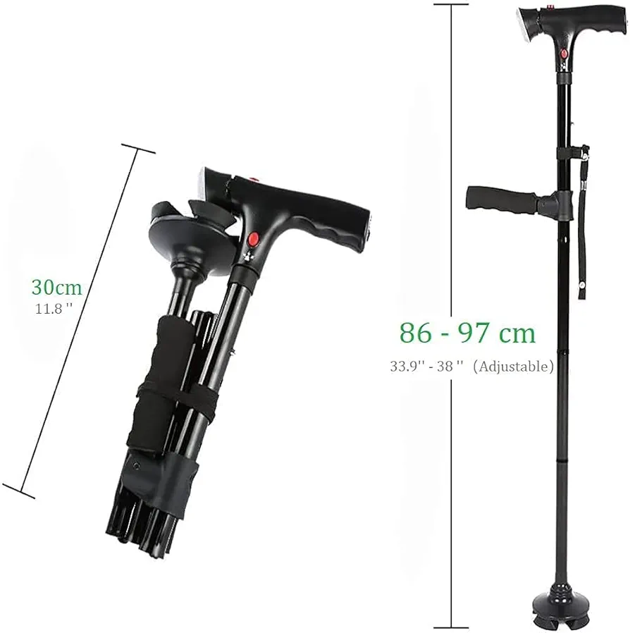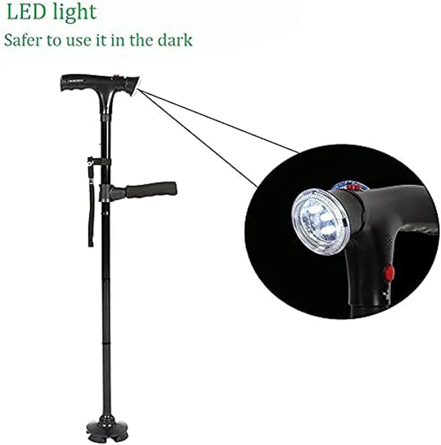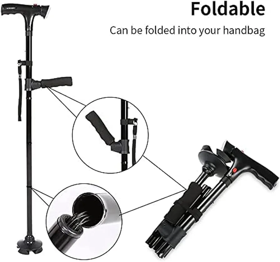 Canne De Marche Intelligente Avec Lumière LED – Double Poignée Pliable Avec Alarme – Réglable – Multifonction