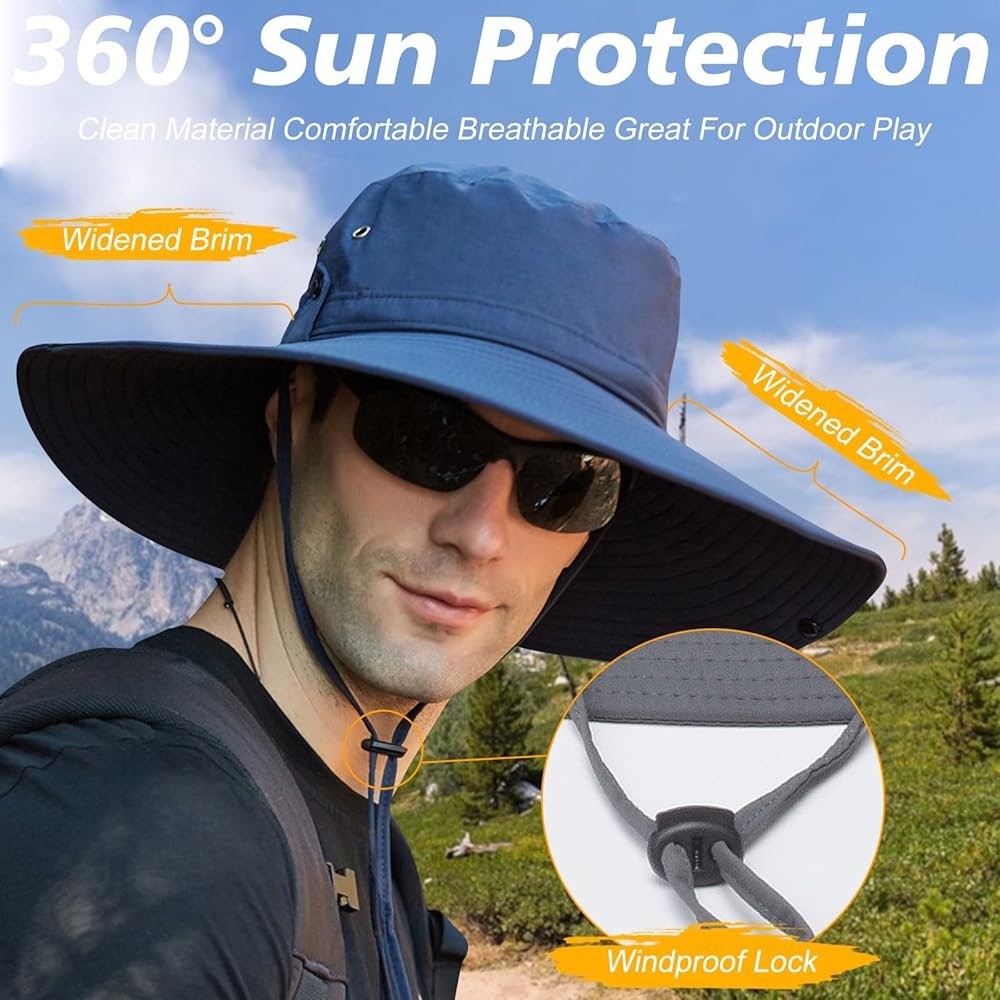Chapeau de randonnée et de camping à large bord pour homme avec protection UV – Bleu