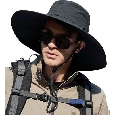 Chapeau de randonnée et de camping à large bord pour homme avec protection UV – Noir