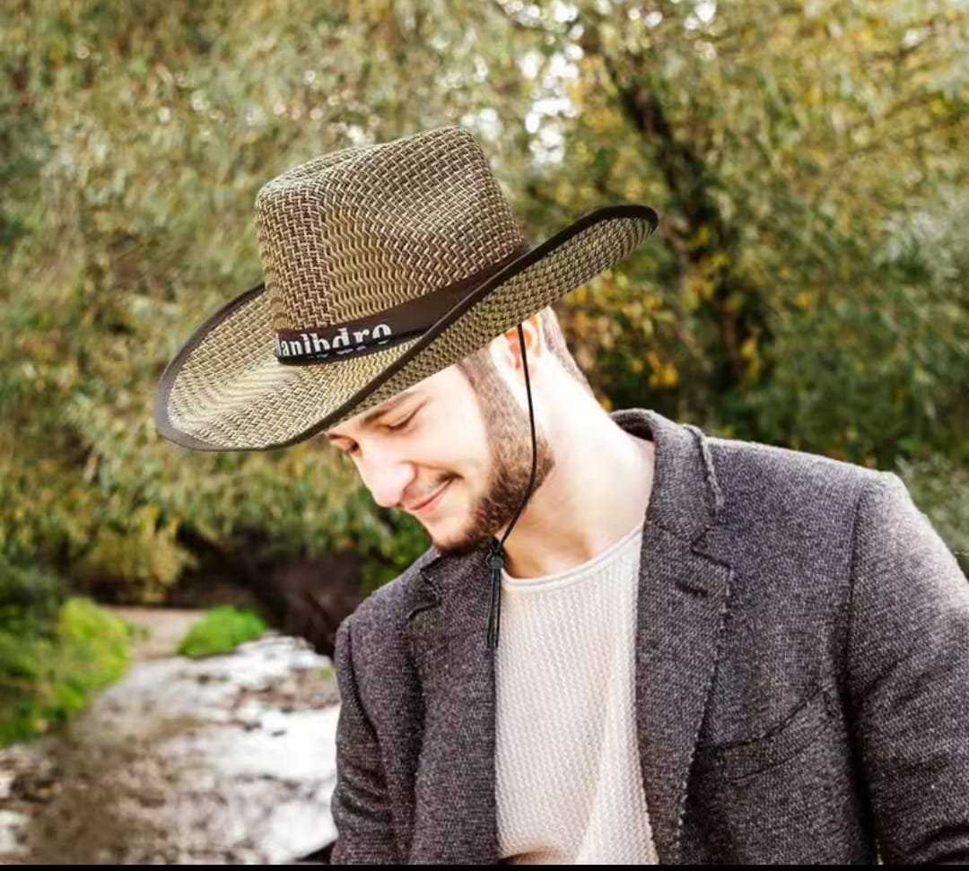 Chapeau De Soleil Unisexe en Paille Tissée à Large Bord Pour L’été