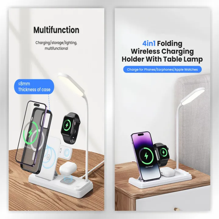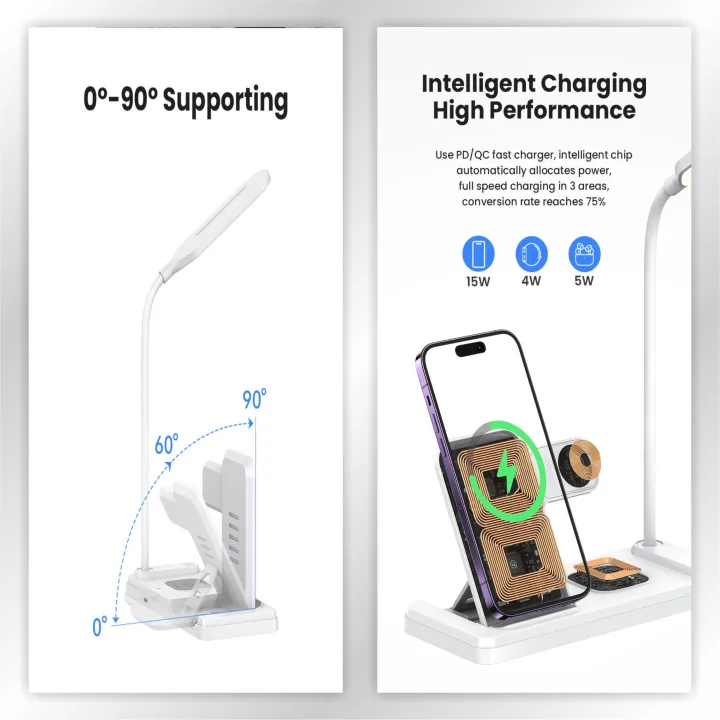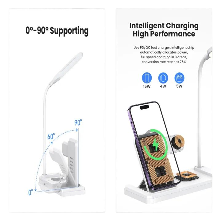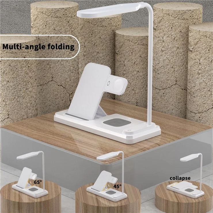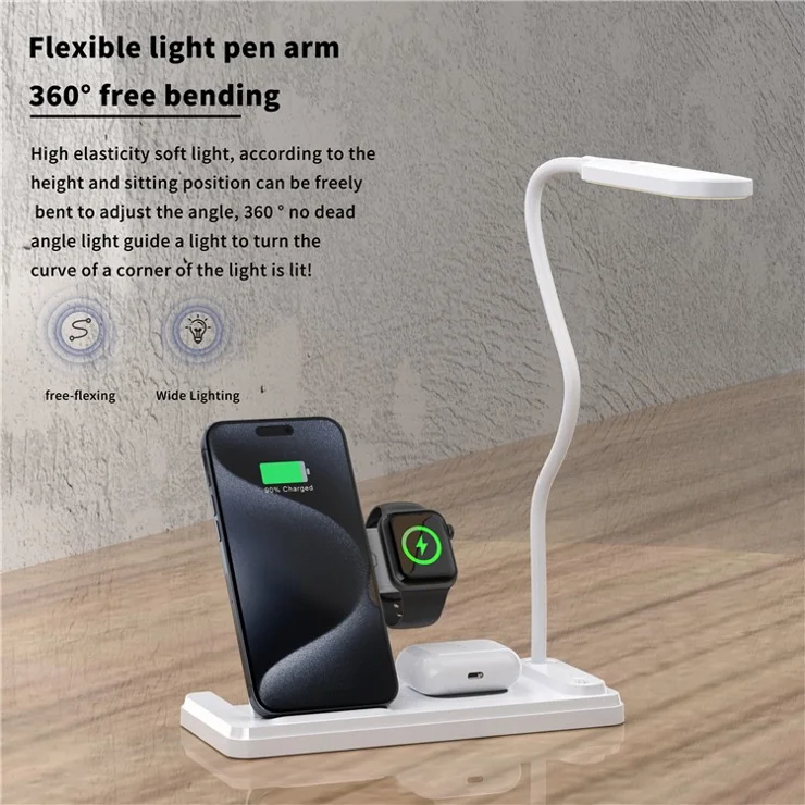 Chargeur Sans Fil Pliable HT-503 15 W Pour Téléphones Montres et Ècouteurs Avec Lampe De Table LED Tactile Flexible – Blanc