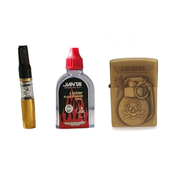 Coffret Briquet De Luxe Métallique 3D Avec Filtre à Cigarette à Tabac Réutilisable Et Recharge De Liquide – Bombe