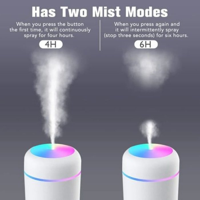 Deux modes de pulvérisation réglables, le mode un (pulvérisation continue pendant 4 heures) et peuvent être utilisés pour purifier les particules d’air ; le mode deux (pulvérisation à intervalles durant 6 heures) peut continuer à humidifier toute la nuit.