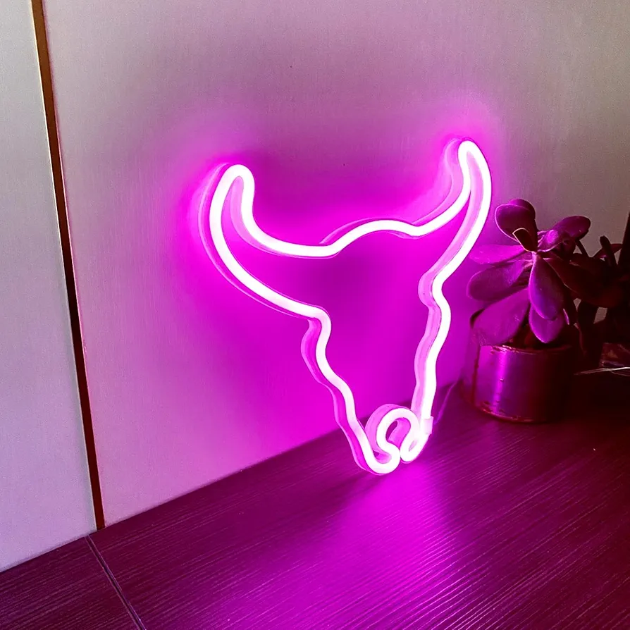 Enseigne Lumineuse Led En Néon (taureau) – USB – Décoration – Rose