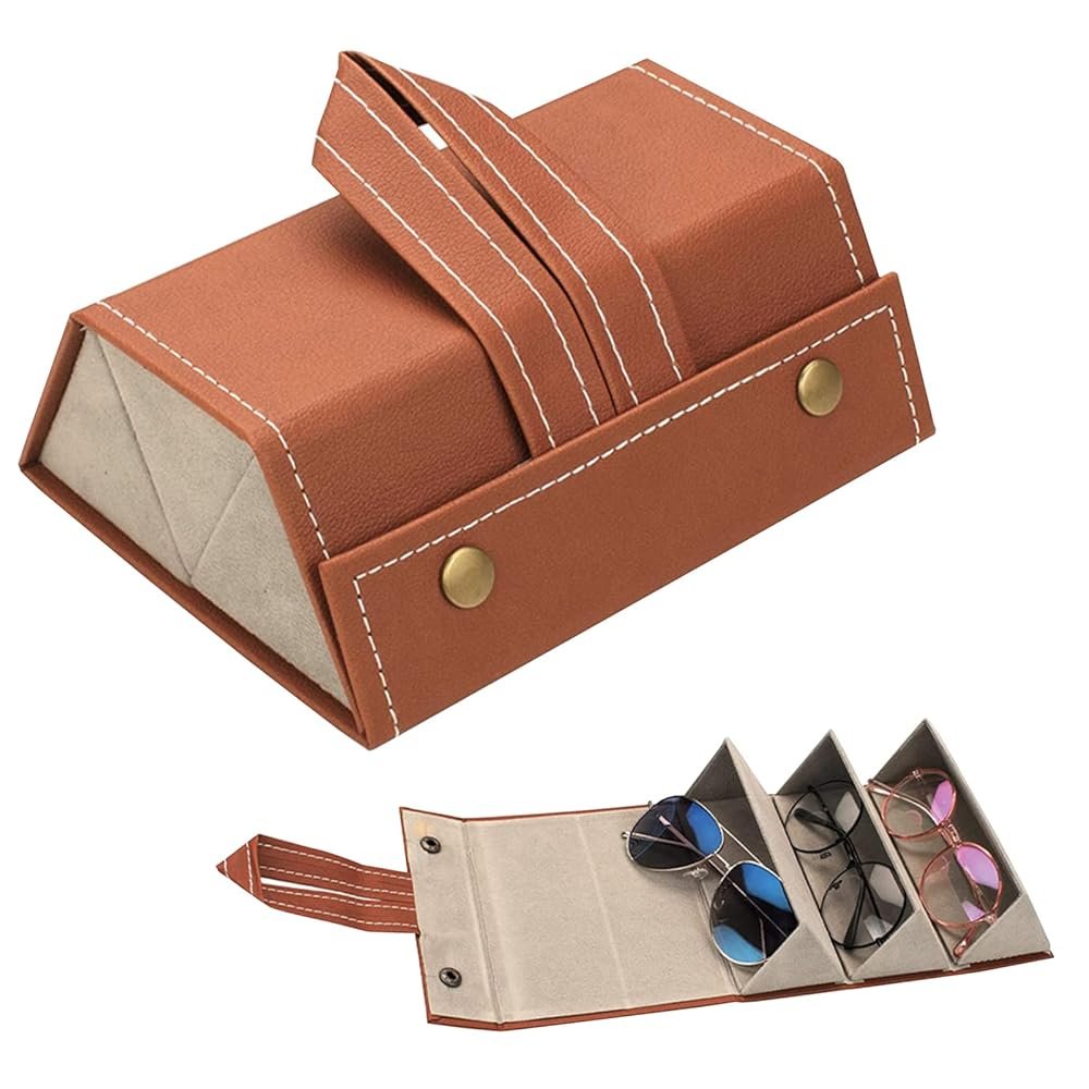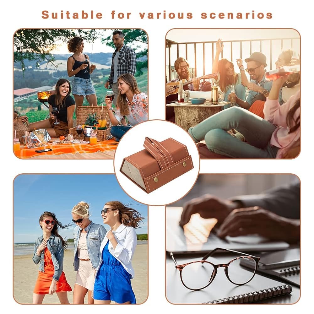 Étui à Lunettes Pliable 3 En 1 En Cuir PU – Multi-usages – Marron
