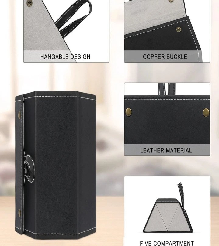 Cet étui de voyage pour lunettes de soleil présente un design unique qui vous permet de ranger non seulement vos lunettes, mais aussi vos montres, colliers, boucles d’oreilles, cosmétiques et autres accessoires.