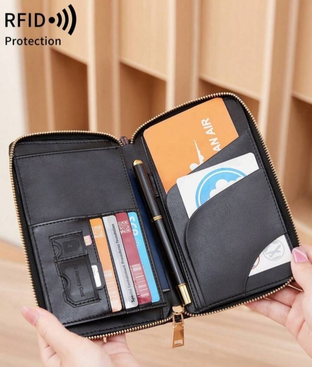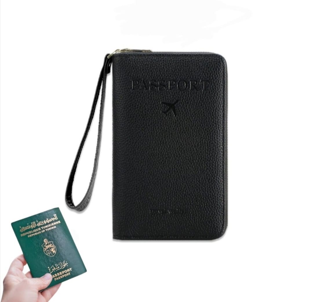 - Étui pour passeport avec porte-carte de vaccination.
