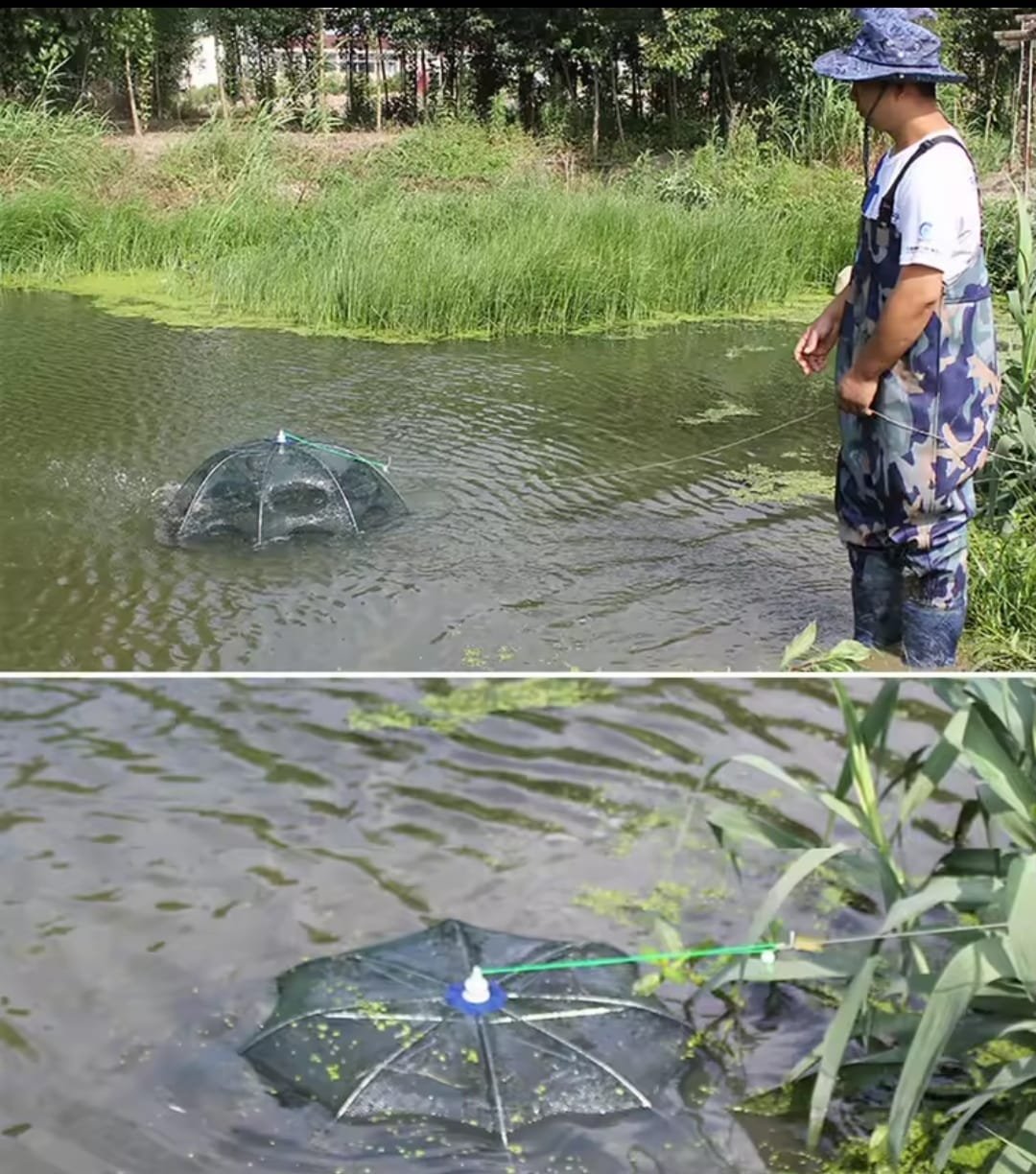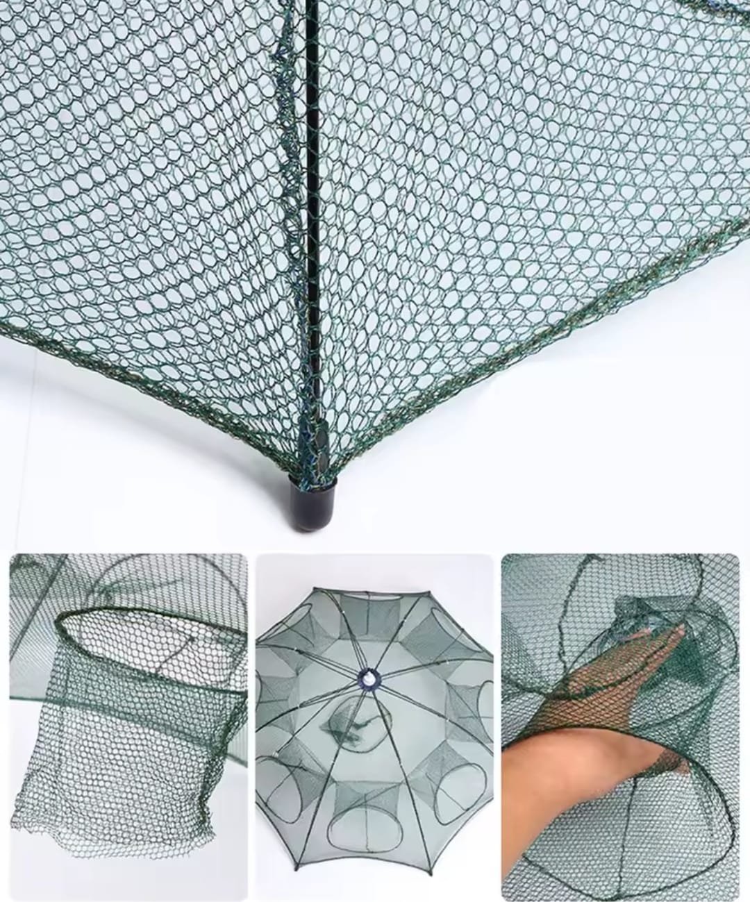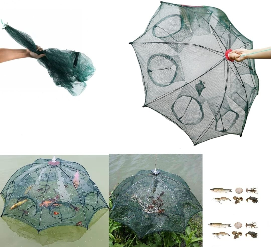 Filet De Pêche Pliable – Parfait Pour Attraper Facilement Du Poisson du Crabe et Des Crevettes – Avec Ligne Fine – 8 Poches