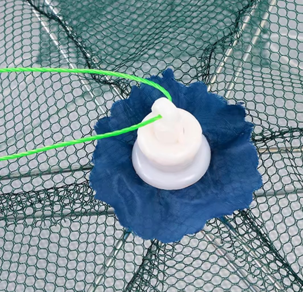Le fond de la cage est conçu avec un trou de pêche et une poche à appâts, et est équipé d’une fermeture éclair à haute résistance pour plus de durabilité.