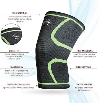Le tissu de compression serré, ajusté et respirant maintient les articulations stables quelle que soit l’activité, tandis que le néoprène de soutien empêche les frottements courants.