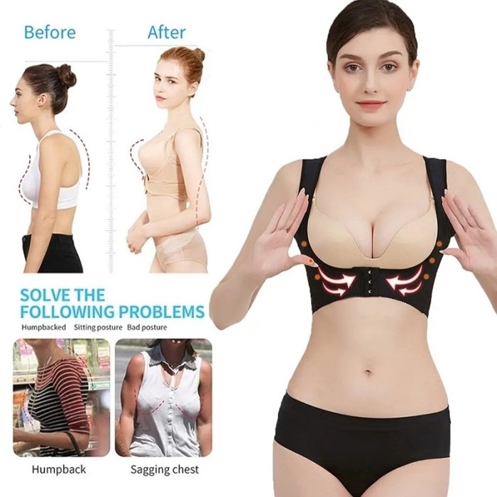 Gilet De Soutien De Dos et Pousser La Poitrine 2 en1 – Correcteur De Posture – Réglable – Taille 2Xl