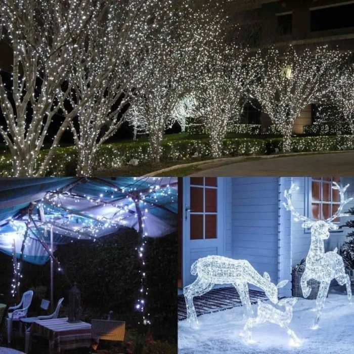 Guirlande De Fête Lumineuse Décorative – Étanche – 8 Modes – 100 LED – Double Fiche – Blanc