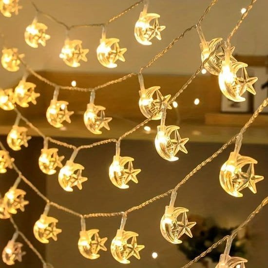 Guirlande Étoile et Lune Lumineuse LED – Étanche – 220v – Décoration Intérieure & Extérieure – 10M