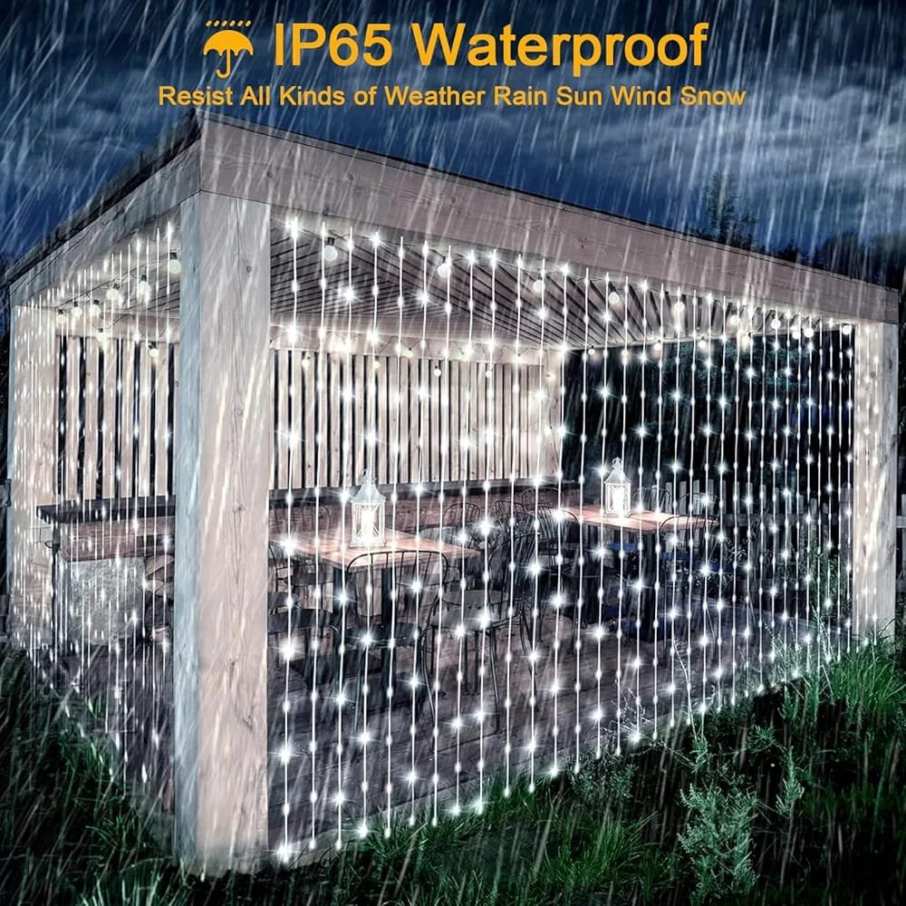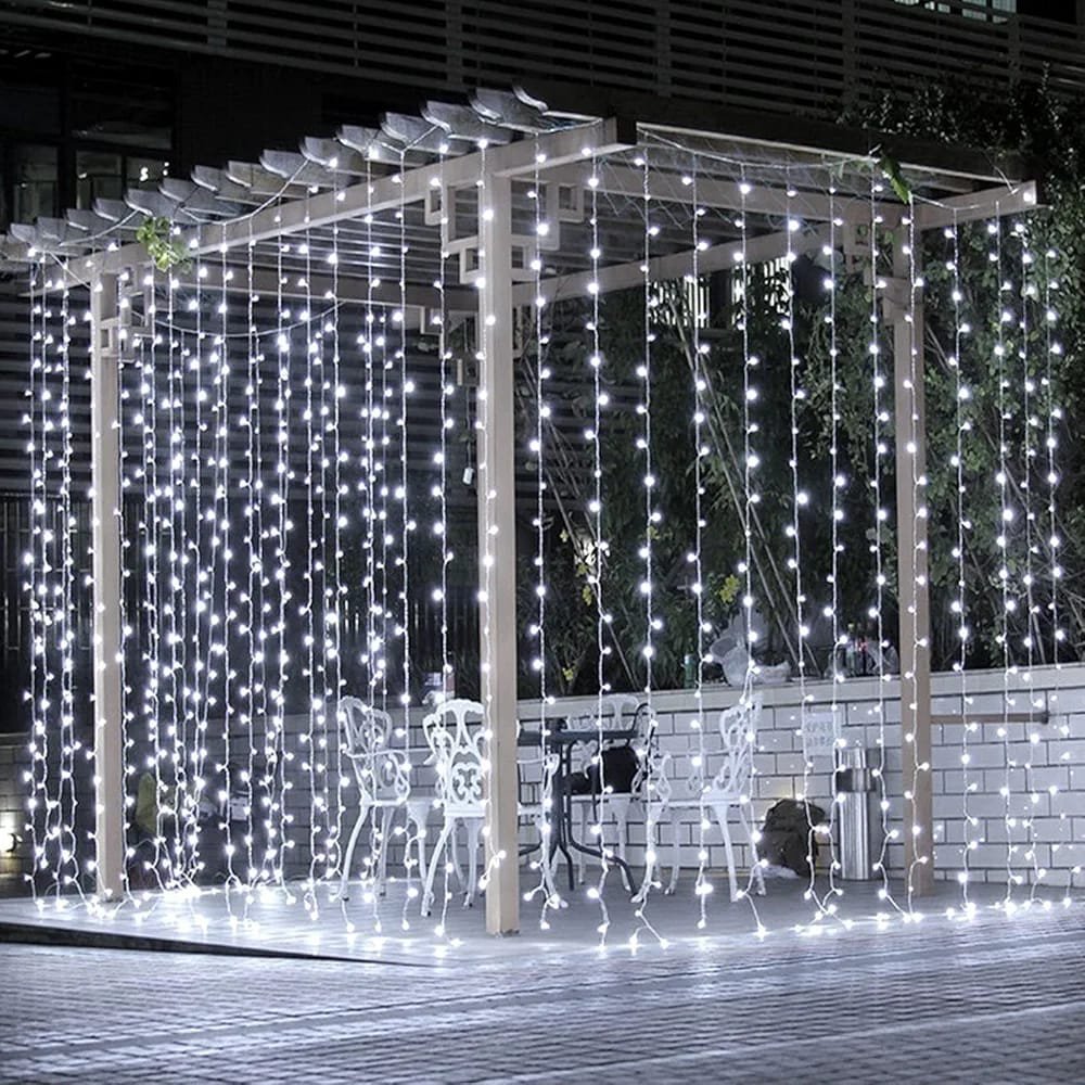 Guirlande Rideau lumineux Hauteur 3 Mètres Sur 3 Mètres – Étanche – Blanc