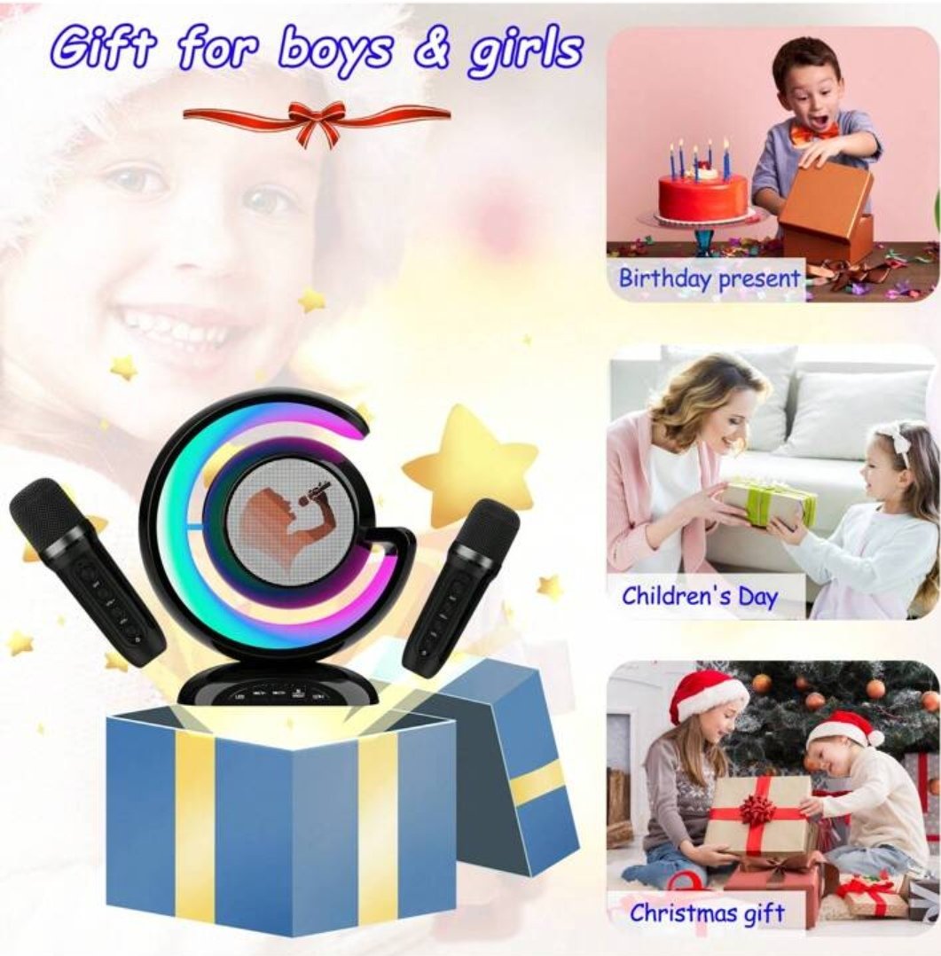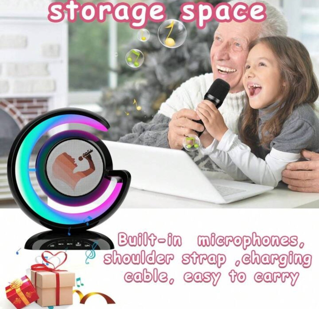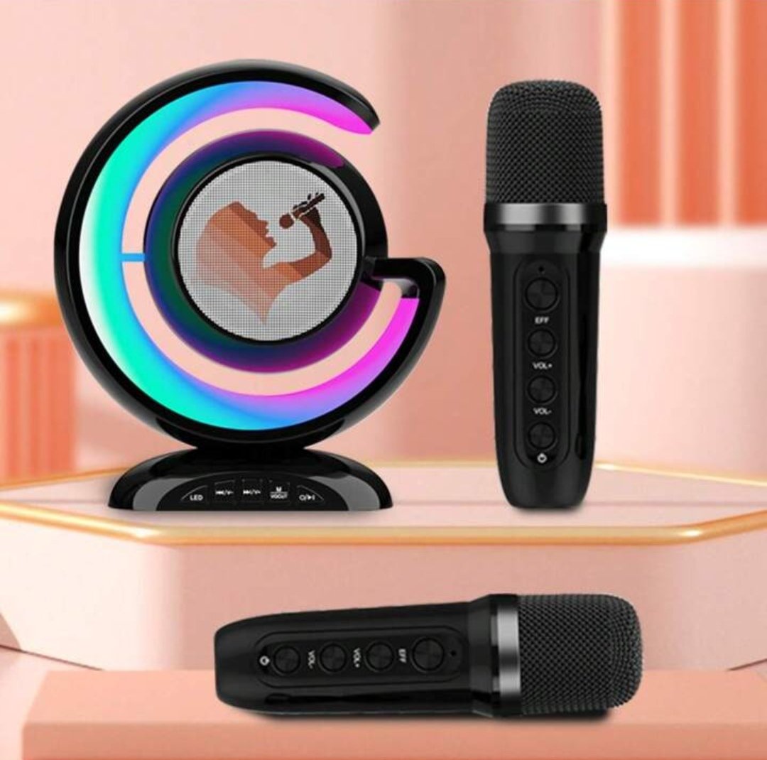- Légère et pratique, cette mini machine à karaoké est livrée avec 2 microphones sans fil et ne pèse que 540g.