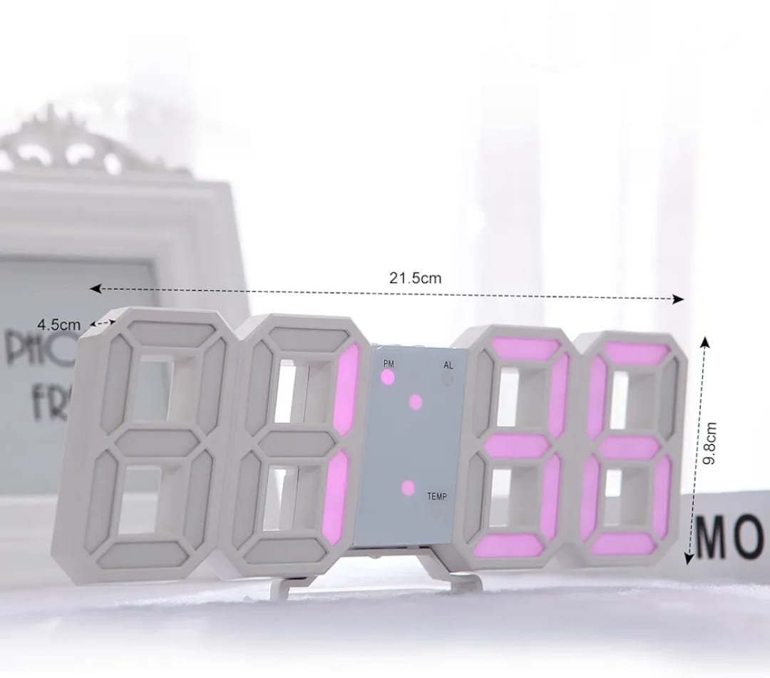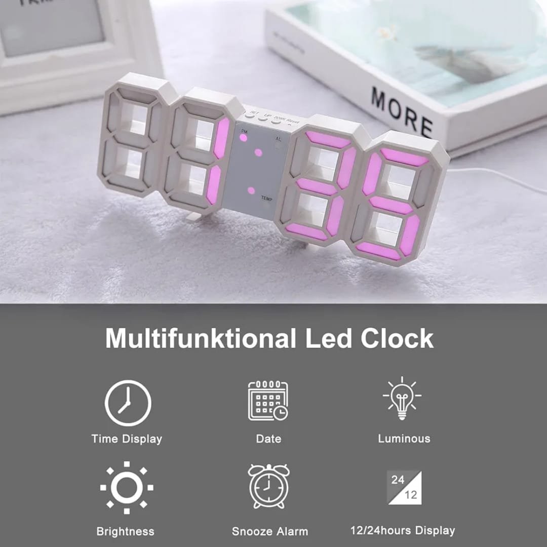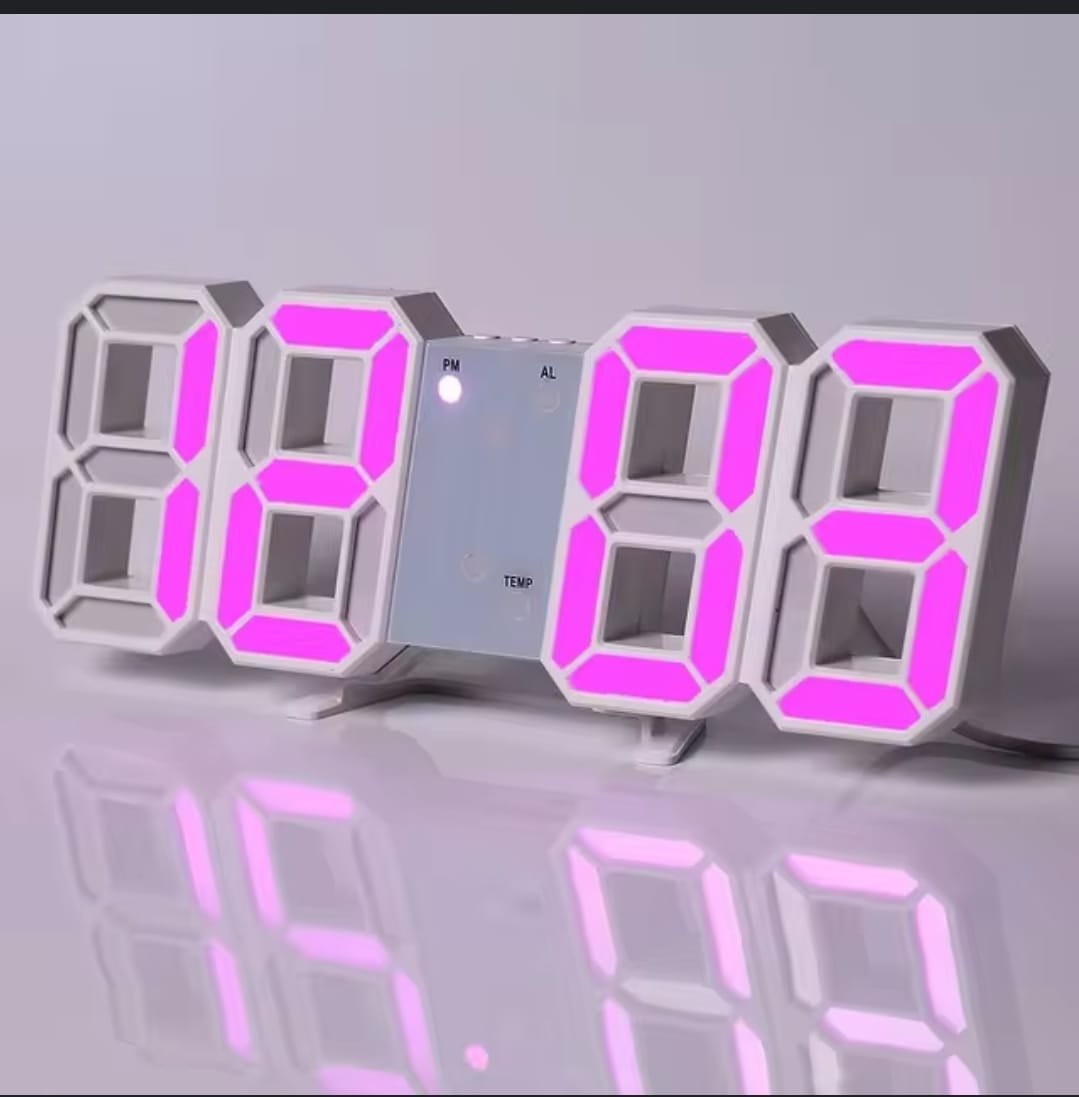 Horloge Digital Led 3D – Affichage 24 et 12 Heures – Alarme Snooze – Température – Rose
