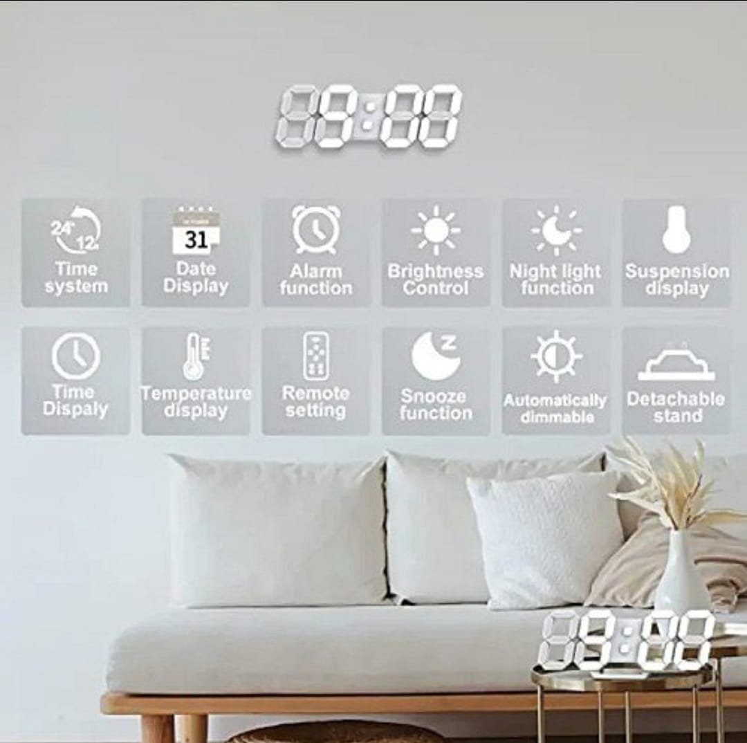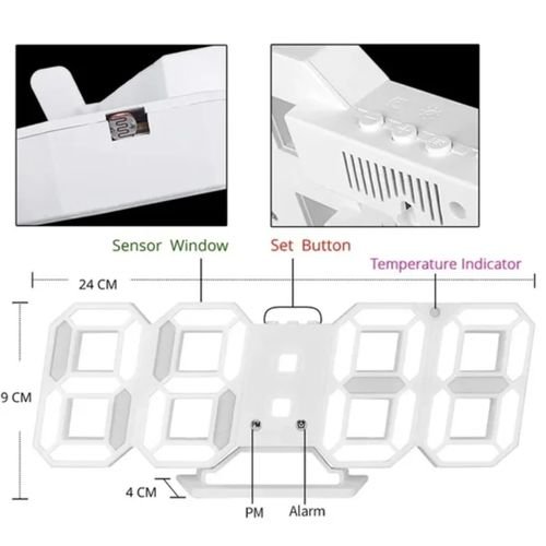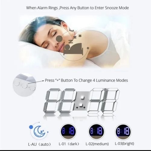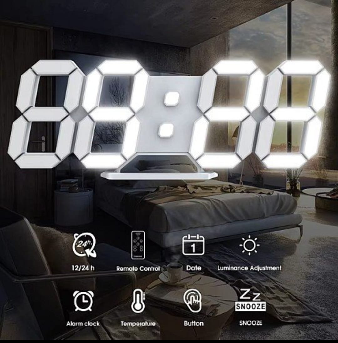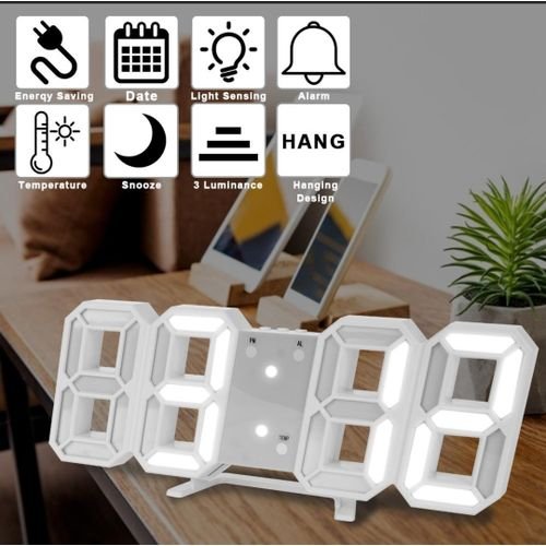 Horloge Digital Led 3D – Affichage 24 et 12 Heures – Alarme Snooze – Température