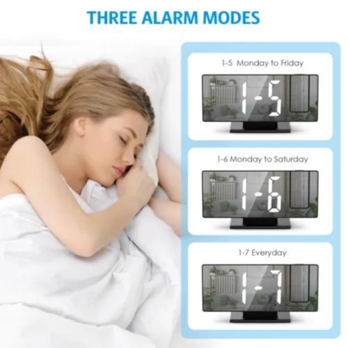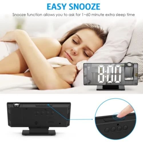 Horloge Numérique Avec Projecteur 180° – Écran Miroir Led – 3 Modes