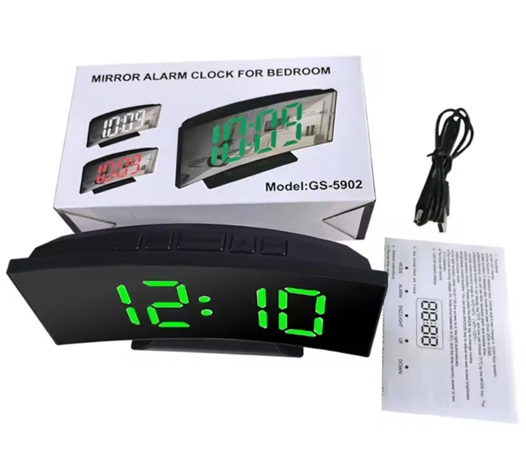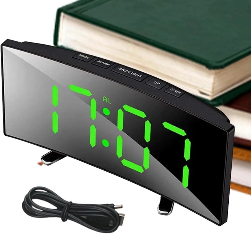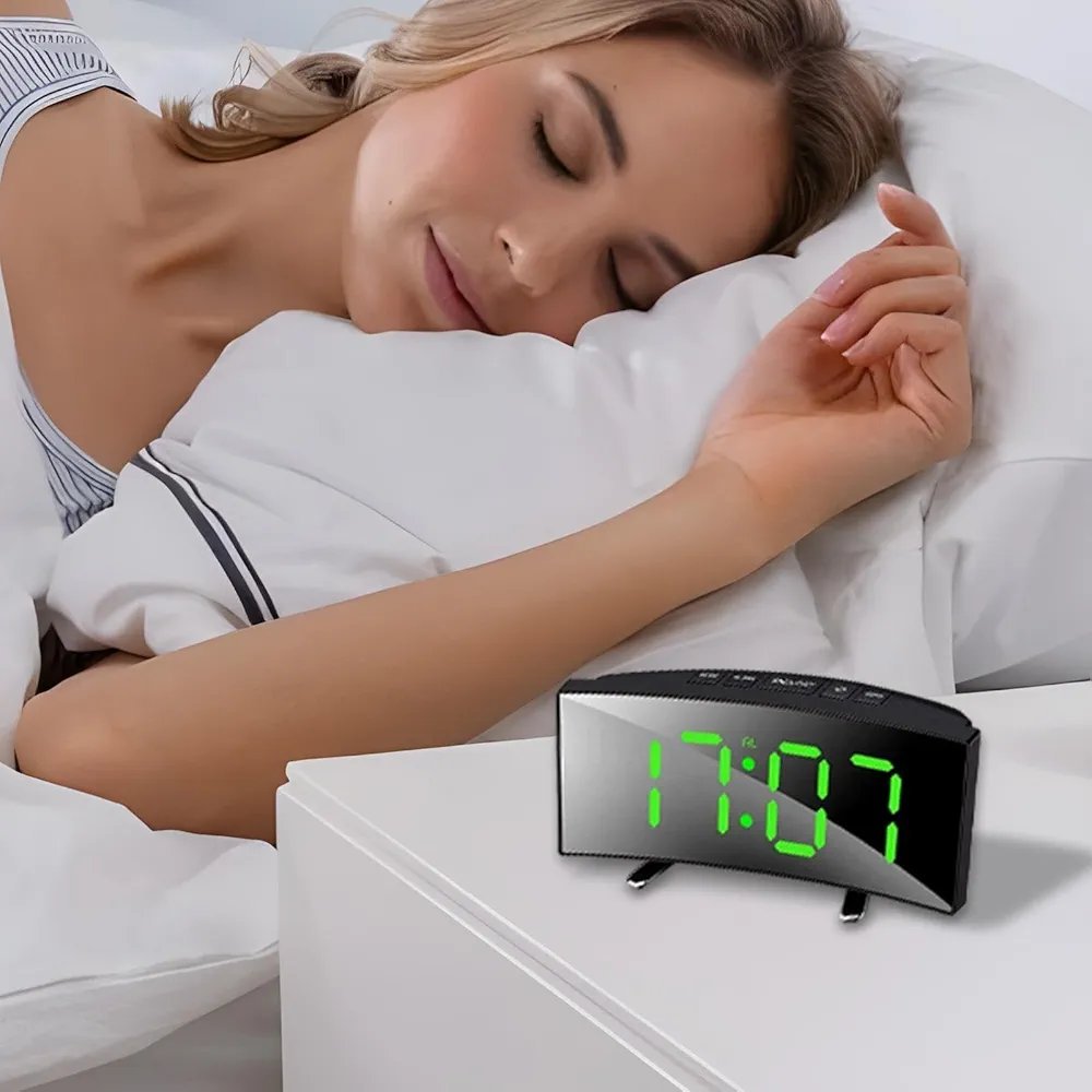 Horloge Numérique Incurvée – Électronique – Rétroéclairage – 3 Niveaux De Luminosité – Affichage De La Température et De L’humidité