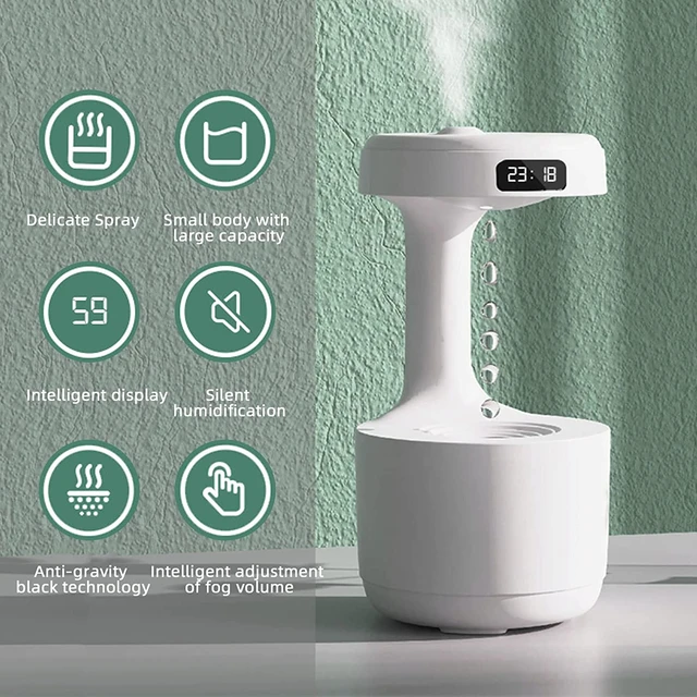 Humidificateur Anti-Gravité – Diffuseur D’arômes – Affichage Numérique Intelligent – Minuterie LED – Rechargeable