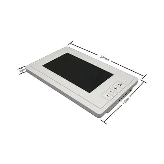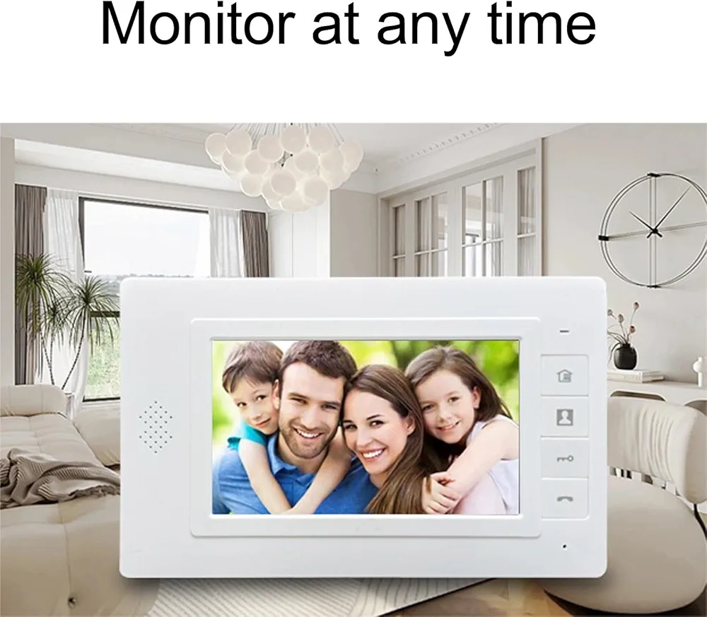 Le moniteur est doté d’un écran lumineux de 7 pouces permettant un réglage facile de la luminosité, du volume et du contraste, ainsi que de plusieurs options de sonnerie, offrant une vue complète de l’espace extérieur.