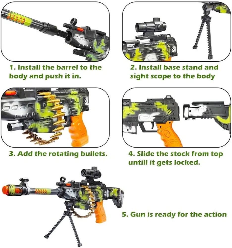 Jeu Pistolet Mitrailleur À Barillet – Étui – Bandoulière – Lumières Clignotantes – Effets Sonores – Design Militaire