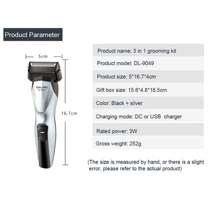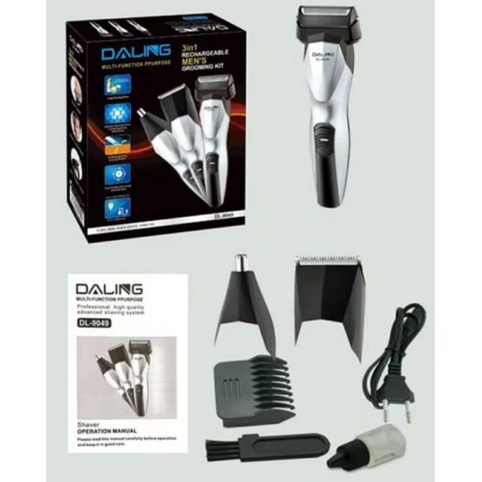 Tondeuse DALING rechargeable 3 en 1 pour homme , temps de charge sans fil de 180 minutes pour 60 minutes de durée ,coupe-goupille,parfait pour les courbes du visage,les doubles lames de précision rasent les cheveux longs et la barbe,fournit un rasage de près et confortable, conception ergonomique pour une coupe rapide et affleurante,Batterie sèche rechargeable, facile à utiliser et à nettoyer, tête mobile ultra flexible, s’adapte à votre peau avec un confort parfait.