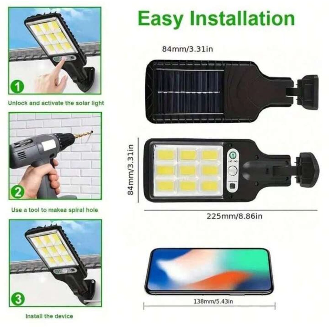 Lampadaires Solaires Extérieurs – 1000W – 3 Modes D’éclairage – Étanche – Éclairage Avec Détecteur De Mouvement – Télécommande