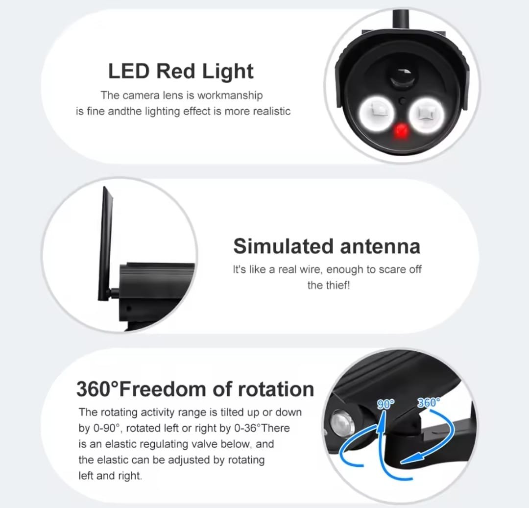 Ces caméras de sécurité factices sont fabriquées avec le même boîtier que les vraies caméras de surveillance, ce qui leur confère un aspect réaliste, avec seulement une LED en plus. Compactes et faciles à installer, elles sont fabriquées à partir de matériaux durables et de haute qualité, offrant l’apparence et le confort d’une vraie caméra de surveillance, un moyen efficace de dissuader les criminels.