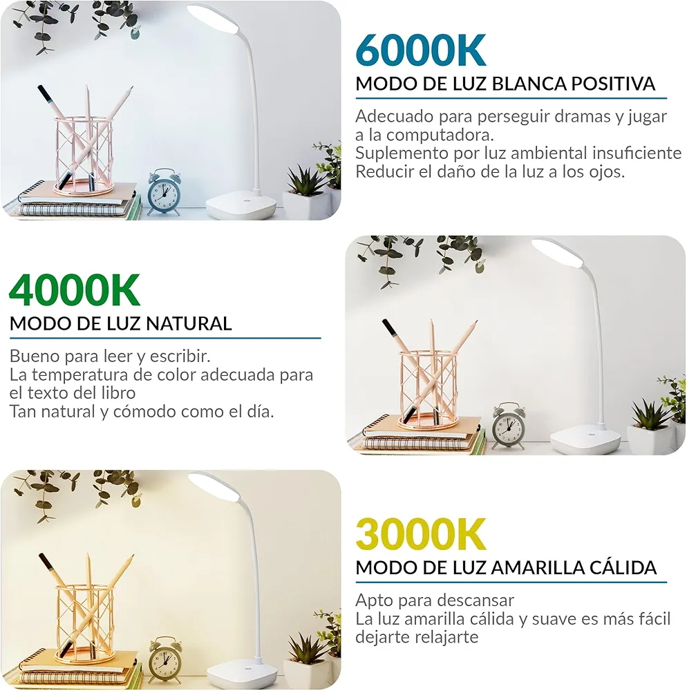 Lampe de bureau non éblouissant et réglable : il y a 3 modes de lumière froide, de lumière chaude et de lumière naturelle, vous pouvez choisir le mode d’éclairage le plus approprié sans éblouissement.