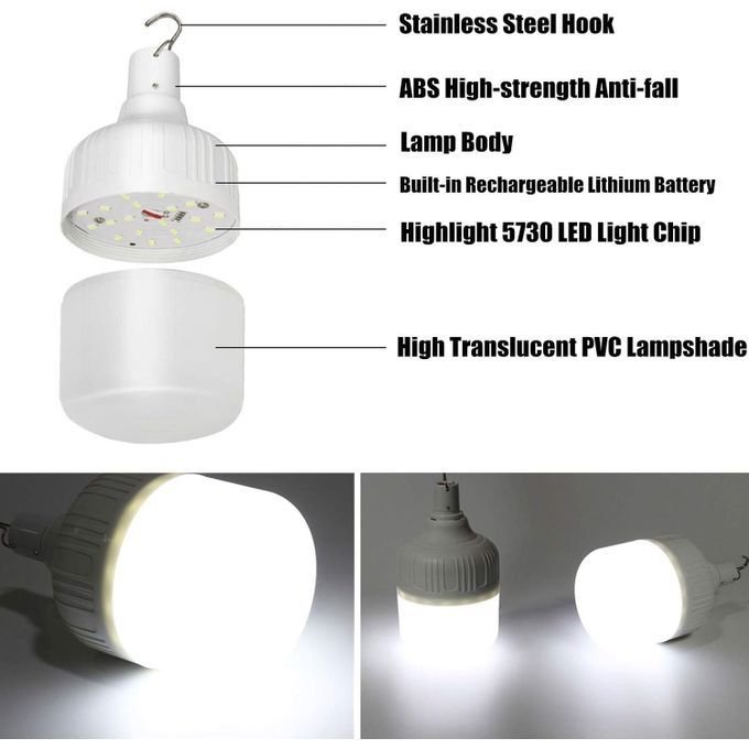 Lampe de Camping LED – Blanc Avec Éclairage De Tente D’urgence – Lanterne De Patio – Rechargeable – Étanche