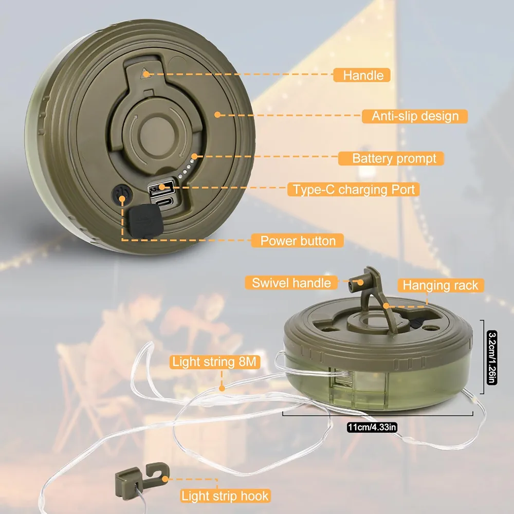 Lampe de Camping LED Multifonctionnelle – Étanche – Avec Guirlande Lumineuse 10 M – Rechargeable