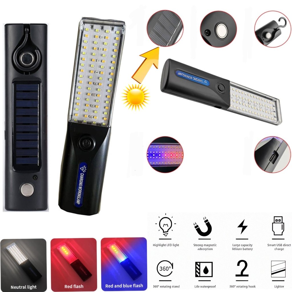Lampe De Secours Solaire Oblivion – Portable – Crochet Rotatif À 360° – Rechargeable Par USB Et Base Magnétique – Puissante – Résistante À L’eau