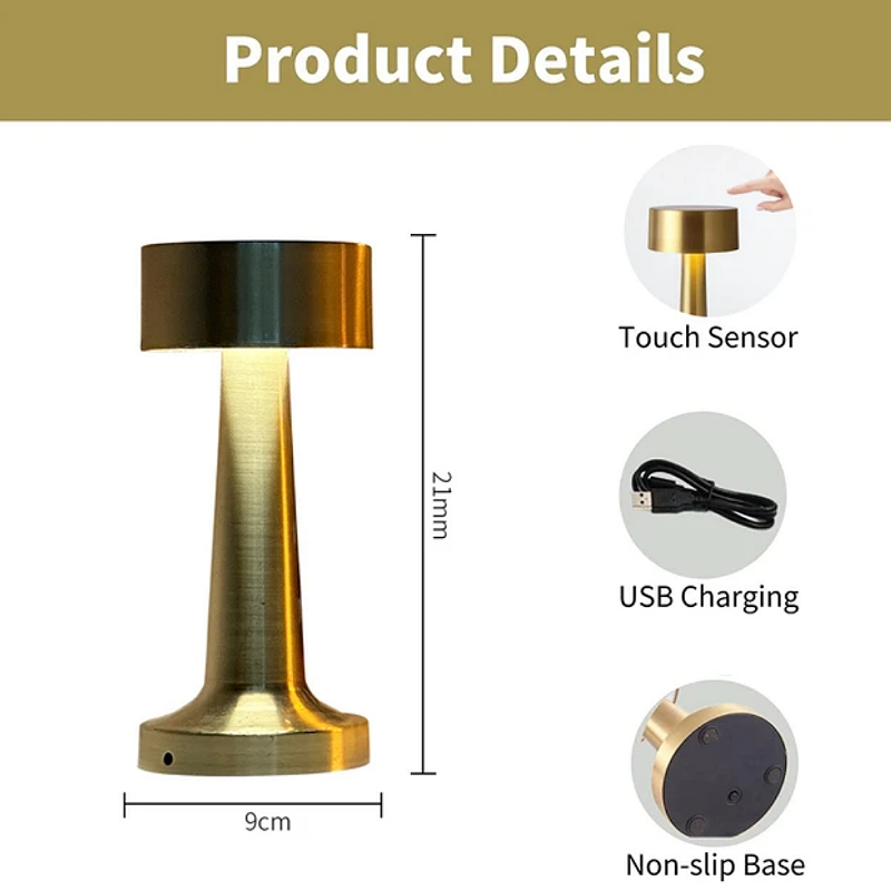 Lampe en métal sans fil : la lampe sans fil est fabriquée en métal de haute qualité et en matériau d’abat-jour translucide en acrylique, avec un processus de revêtement mat, anti-rayures et anti-corrosion efficace. Et la conception antidérapante inférieure est faite.