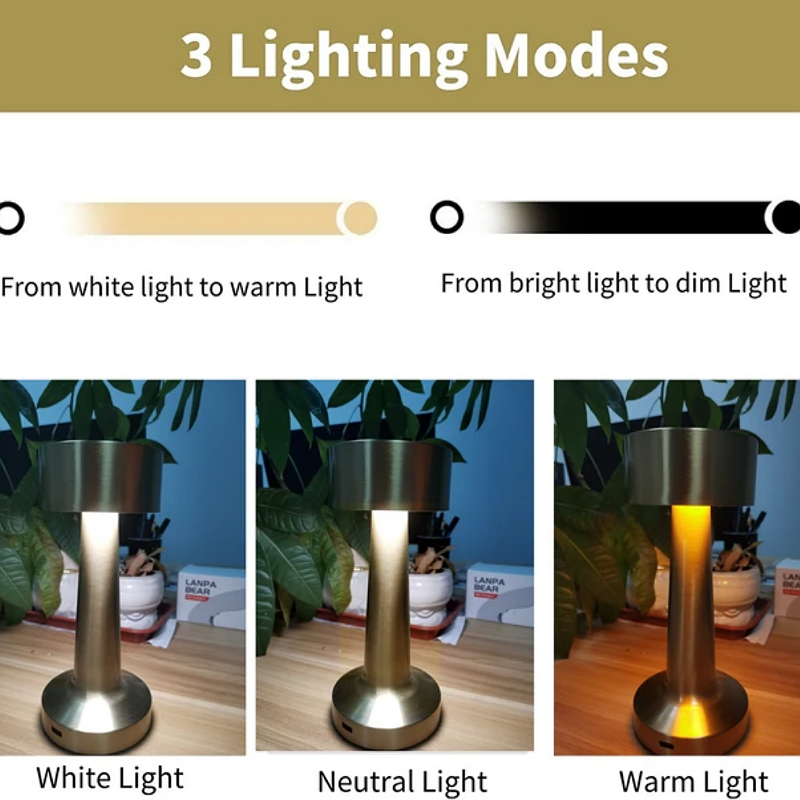 Lampe De Table Led Sans Fil – Rechargeable – 3 Modes D’éclairage Avec Interrupteur Tactile – Portable