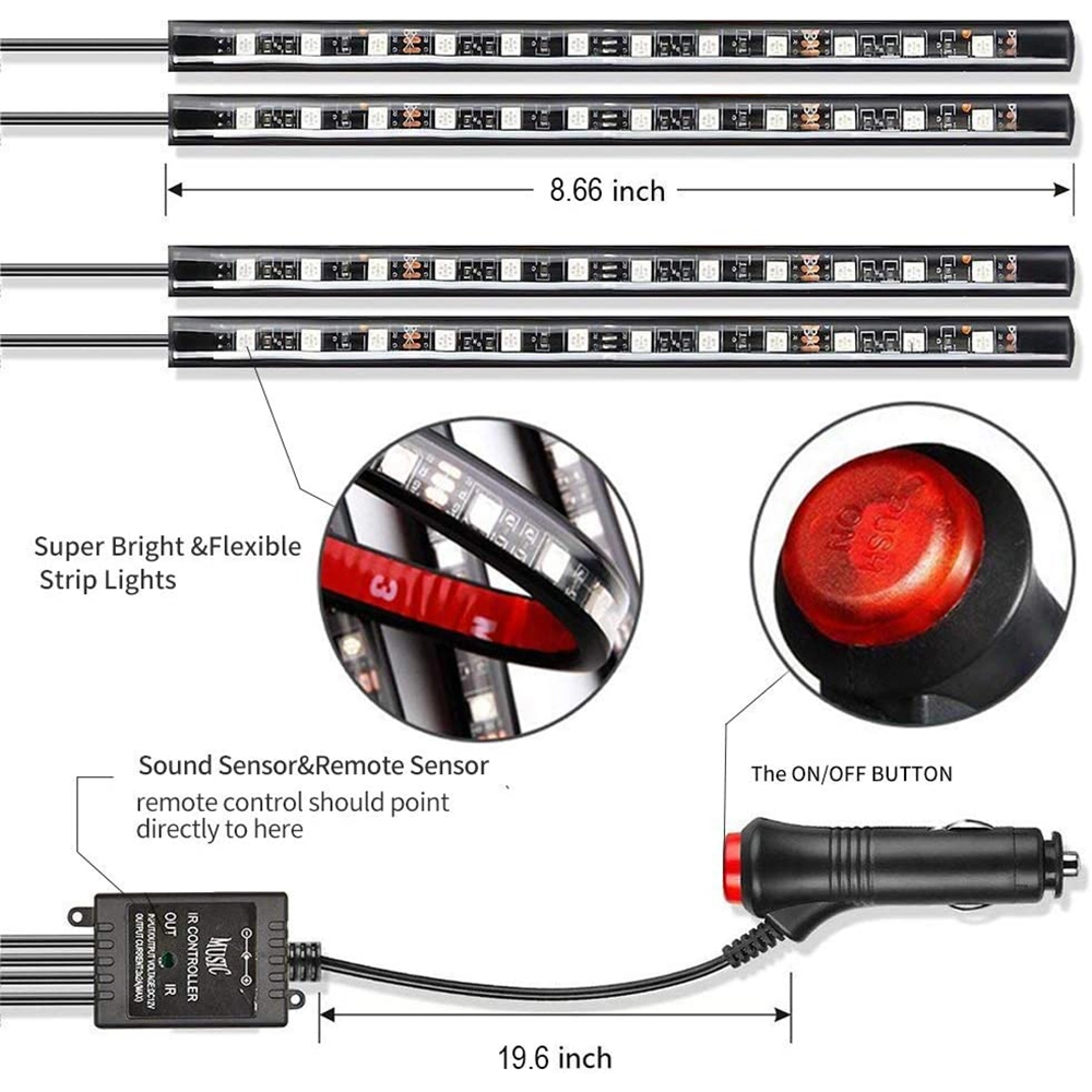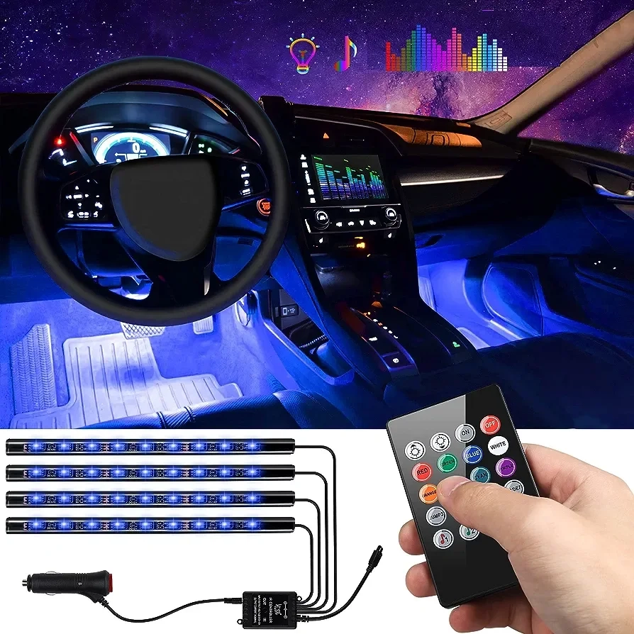 - Kit d’éclairage intérieur RGB sans fil 7 couleurs avec contrôle musical.