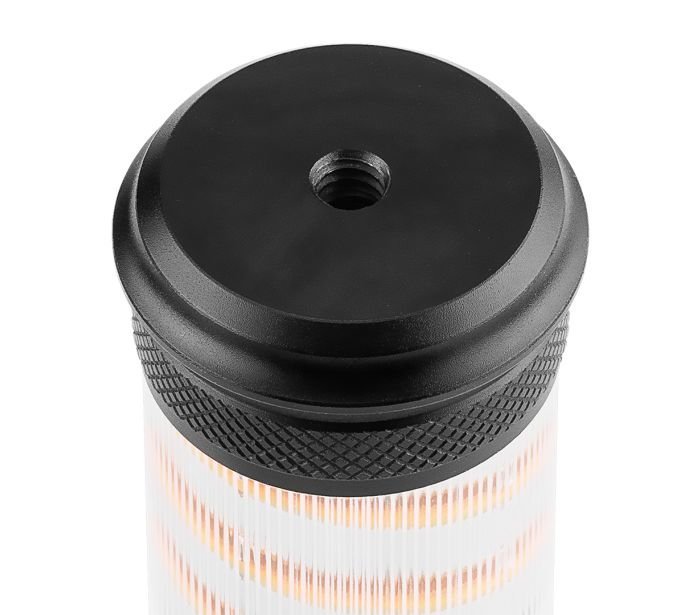 Appareil polyvalent en aluminium qui combine les fonctions essentielles d’une torche et d’une lampe de camping.