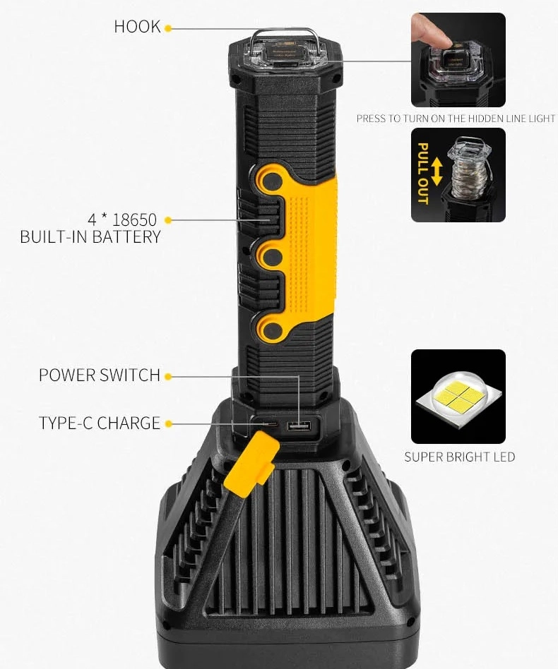 La batterie de cette lampe torche puissante assure un éclairage longue durée et dispose d’une sortie USB, permettant de l’utiliser comme chargeur portable pour votre smartphone.